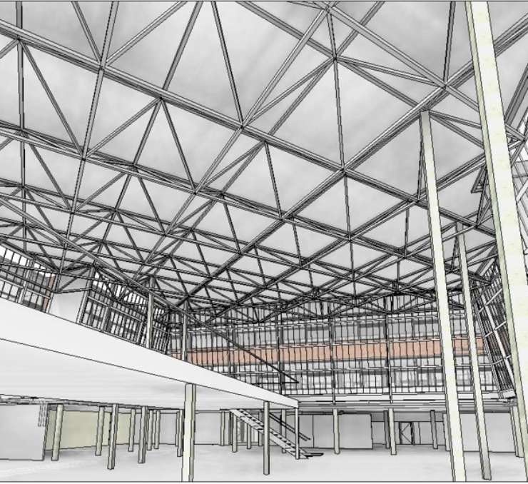 We develop BIM models for the various disciplines—architecture, structure, and engineering—in an integrated manner, covering all Levels of Development (LOD).