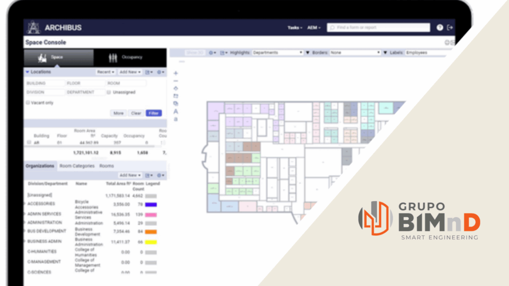 Software de gestión de instalaciones y espacios que integra información BIM para mejorar la operación del edificio.
