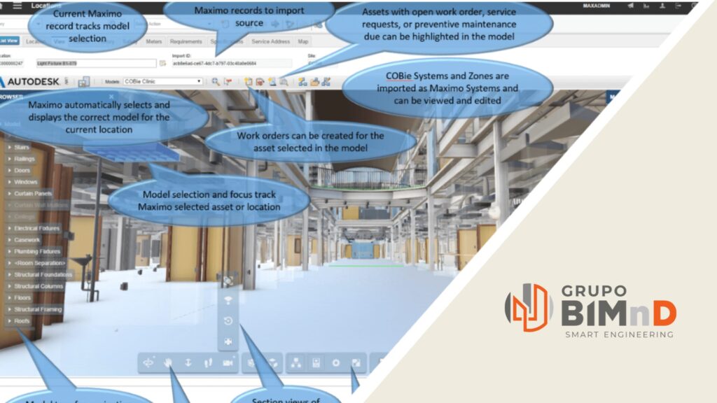 IBM Maximo desde su módulo Building Information Models, permite su integración con proyectos BIM y da la opción de tener un modelo único actualizado donde todos los intervinientes puedan mirar y conectar con Maximo para la fase de mantenimiento de sus activos.